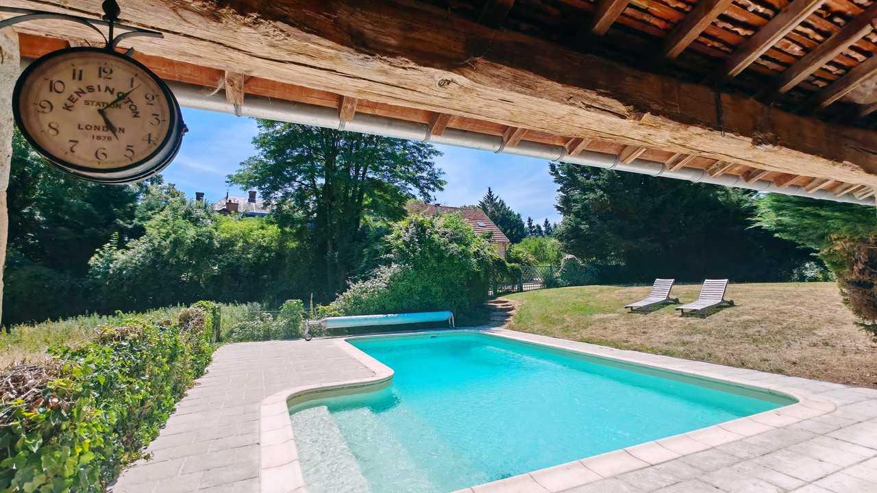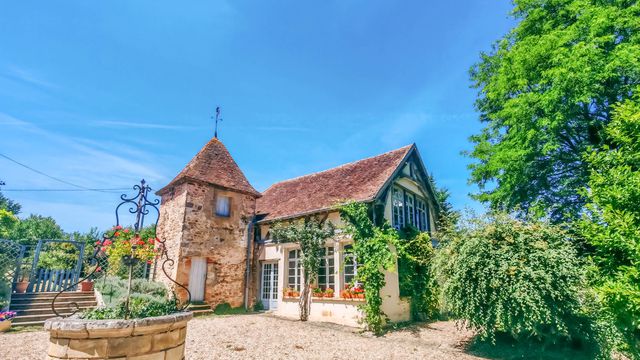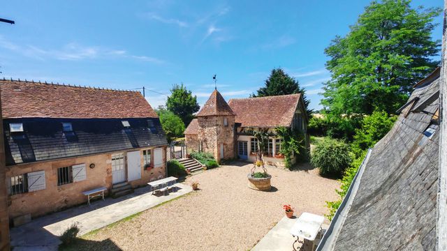 Organisé autour d'une charmante cour centrale, le domaine inclut un jardin paysager, une piscine avec vue imprenable et un atelier/studio indépendant. Le terrain de 3,9 hectares (10 acres) comprend prairies, étangs et vergers — idéal pour une maison familiale ou une activité d'accueil.