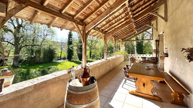 A36233LIS82 - À 15 minutes du village médiéval de Lauzerte, ce moulin du XVIIe-XVIIIe siècle séduit par son authenticité et son environnement naturel de plus de 6 hectares. Entourée de prairies, bois et bordée par une rivière, la bâtisse en pierre avec ses deux tours en poivrière et sa galerie couverte incarne l'élégance intemporelle. Elle comprend 11 chambres (dont 6 avec salle de bain privative), 5 vastes pièces de vie, une dépendance bien-être avec piscine intérieure, spa et espaces détente, ainsi que plusieurs caves et une annexe à aménager. Un lieu rare, idéal pour un projet de vie ou d'accueil haut de gamme au cœur d'un cadre bucolique et préservé.