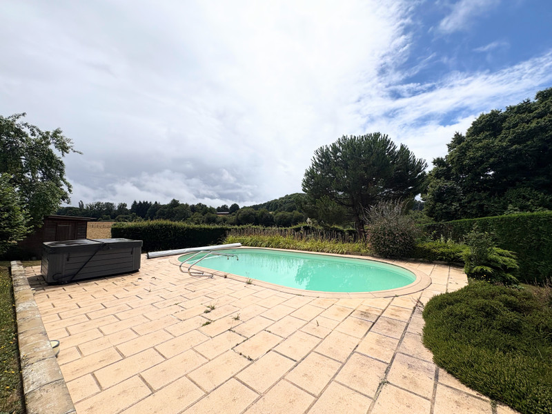 La propriété bénéficie d'un jardin privé sans vis-à-vis avec une superbe piscine ovale creusée et un jacuzzi – idéal pour se détendre ou recevoir. Un jardin supplémentaire à l'arrière comprend des espaces de rangement pratiques, parfaits pour les outils ou le matériel.