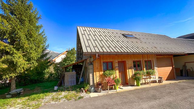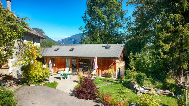 685 000 € ID: 174032Située au cœur du massif des Bauges à Lescheraines dans une impasse calme et paisible, cette maison mitoyenne en pierre, plein sud, avec chalet d'été rustique et habitable, plus le potentiel d'un autre 100m2 habitables dans le bâtiment du garage, est parfait pour une grande famille ou une activité locative. À pied de tous les commerces, restaurants, école primaire et la base de loisirs, Les îles du Chéran. À seulement 25 km d'Annecy et de Chambéry, la propriété est idéalement bien située, avec les 3 domaines skiables ainsi que toutes les belles villes, lacs et montagnes à côté Le beau chalet d'été rustique de 40m2 est avec cuisine bien équipé / séjour, un espace nuit sur la mezzanine, Four à pain et une cave bien fraîche.