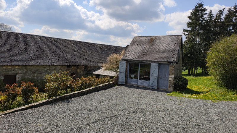Les dépendances entourent la cour gravillonnée. L'une d'elles sert actuellement d'atelier d'artiste, l'autre de bureau privé et spacieux.