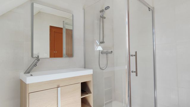 Étage : Trois chambres dont deux avec salle d'eau contemporaine privative, plus deux WC et grenier.