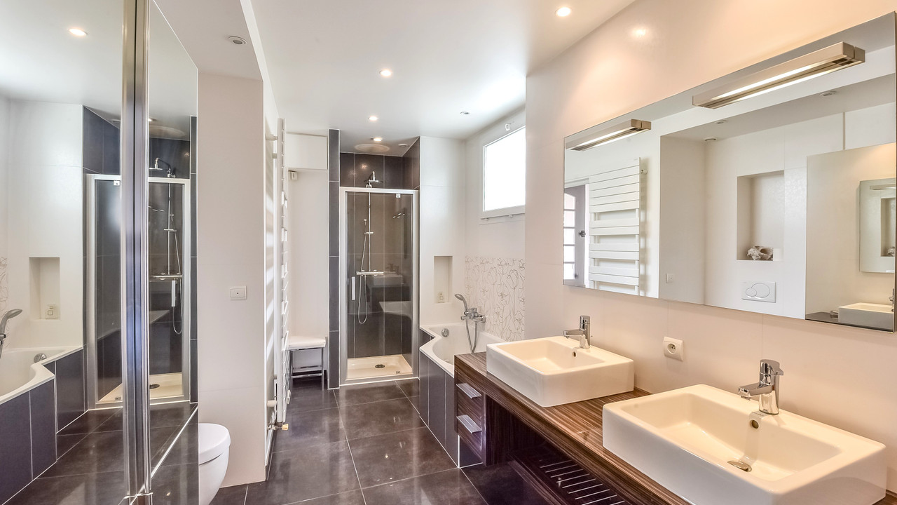 Le rez-de-chaussée comprend une suite parentale avec salle de bains et WC, ainsi qu'une seconde chambre avec salle d'eau.