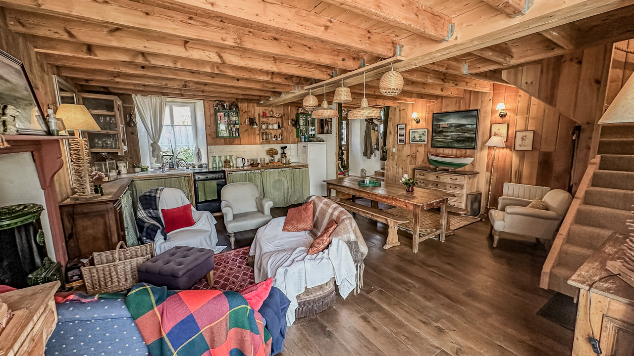 A38140WD50 - Maison en pierre magnifiquement rénovée, nichée dans un cadre de village exceptionnel, à seulement quelques pas de la plage, du café/bar et de la boulangerie. Cette spacieuse résidence de six chambres dispose de sept salles de bains et offre de nombreuses possibilités : que ce soit en tant que luxueuse maison de vacances ou en tant que charmante activité de chambres d'hôtes/centre de bien-être.