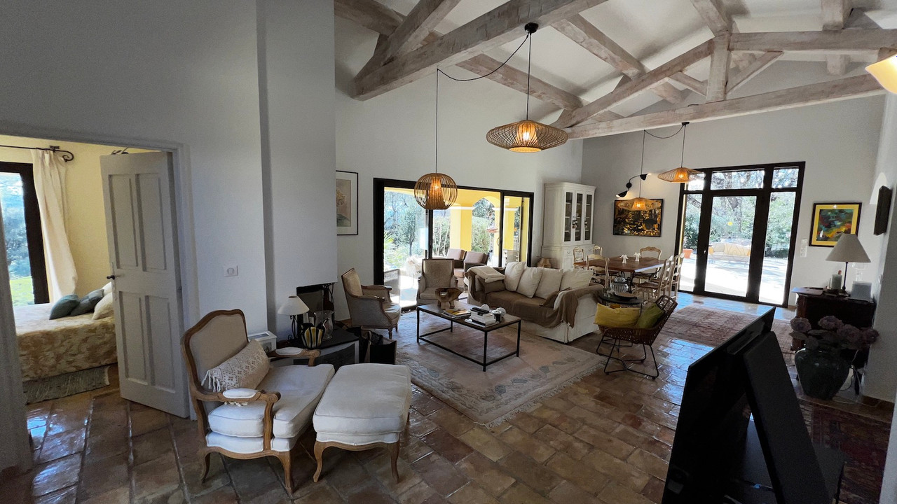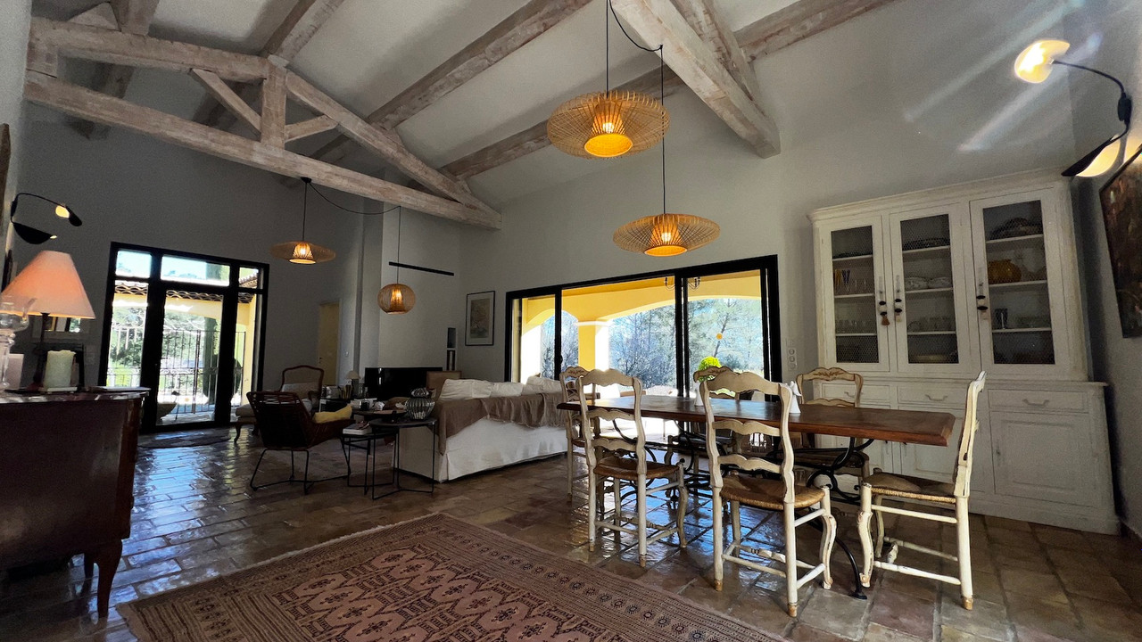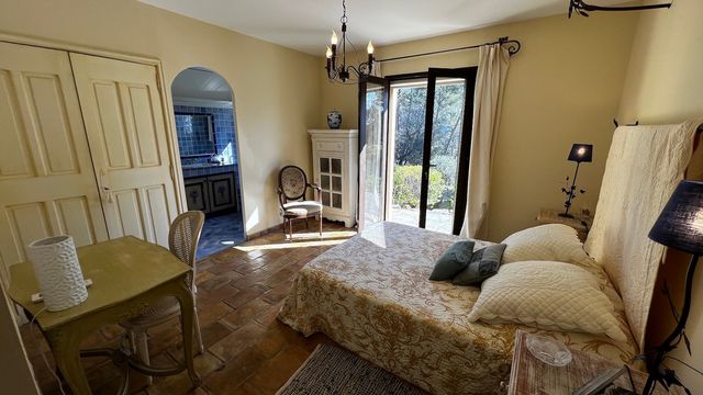 A39845GWI83 - Cotignac. Entre les Gorges du Verdon et la Côte d'Azur, Cotignac est classé Plus Beau Village de France depuis 2022. À proximité du village et de toutes commodités, charmante maison provençale située au cœur du village sur un superbe terrain de plus de 4 100 m², arboré d'essences méditerranéennes. Intimiste et calme, elle offre une vue dégagée sur la campagne environnante. Belle piscine, cuisine d'été avec cellier, salle d'eau et toilettes. Entrée, spacieux séjour/salle à manger avec cheminée, lumineux et ouvrant sur une grande terrasse exposée sud-est, partiellement ombragée. Jolie cuisine ouverte équipée avec coin repas, buanderie, cellier. Une confortable chambre principale avec placards, ouvrant sur un joli patio, salle d'eau et toilettes privatives. Une autre chambre avec placards, salle de bains et toilettes privatives. Dans l'autre aile de la maison, deux autres chambres, deux salles d'eau et toilettes. Abri voiture et parking.