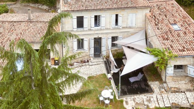Magnifique propriété en pierre rénovée, avec gîte, dépendances & grand terrain. Belles vues. Proche Fronsac