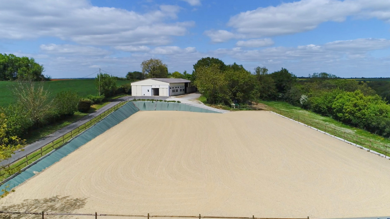 Côté équestre, les installations comprennent : une carrière réalisée en 2020 en sable fibré, un manège couvert intégré dans une dépendance équipée de panneaux solaires (générant un revenu annuel d'environ 17.000€), ainsi que trois autres bâtiments abritant un total de 11 boxes, un marcheur intérieur, une sellerie et plusieurs espaces de stockage. Le tout s'étend sur près de 4 hectares de paddocks et prairies appartenant à la propriété, (avec opportunité éventuelle de bail sur 16 hectares de terrain supplémentaires).