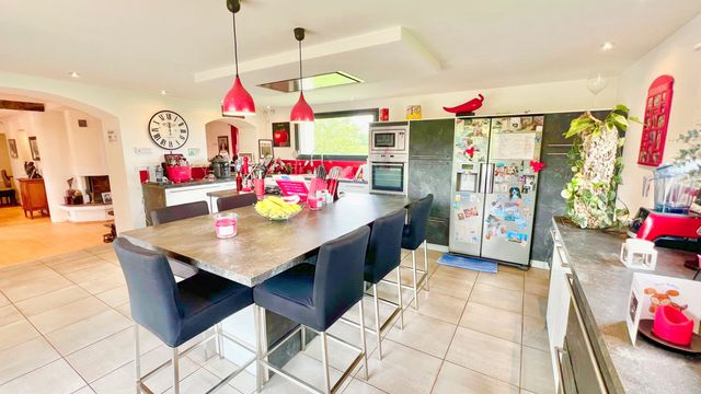 A32311CMC09 - Nichée au cœur d'une campagne sereine avec les Pyrénées françaises en toile de fond, cette maison de campagne de 5 chambres (390 m2) et ses dépendances (150 m2), récemment rénovée et orientée au sud, offre un mélange parfait d'élégance rustique et de confort moderne.