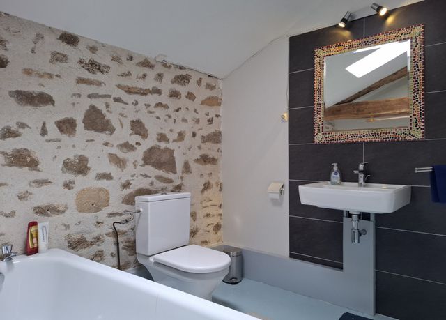 Une entrée de caractère et une salle de bain avec WC au rez-de-chaussée.