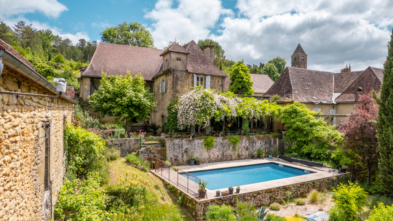 Dans le jardin, contemplant les vues dégagées et les bâtiments présents il est difficile d'imaginer que cette maison aux allures de manoir se trouve en plein cœur d'un village typique du Périgord Noir.