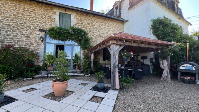 A37865LC24 - Cette élégante et vaste maison de maître offre 7 chambres et un excellent potentiel pour une vie intergénérationnelle ou une activité de gîte déjà en place. Elle comprend une grange attenante, une piscine entretenue, et un jardin paysager d'un hectare avec un accès direct à la rivière.