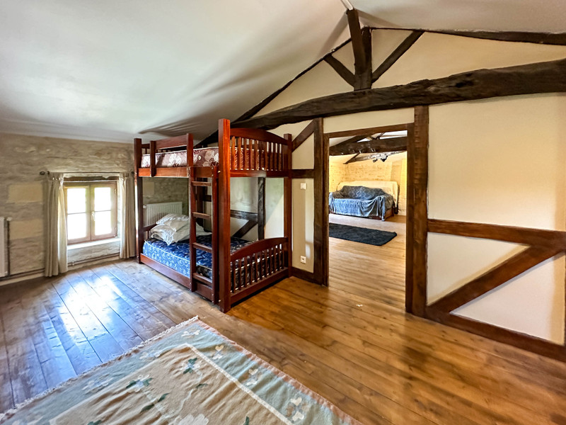 La maison a de beaux foyers d'origine, des poutres, des murs en pierre et une cage d'escalier.