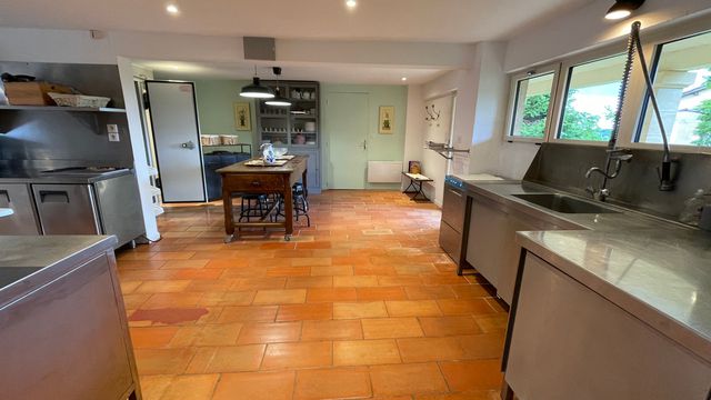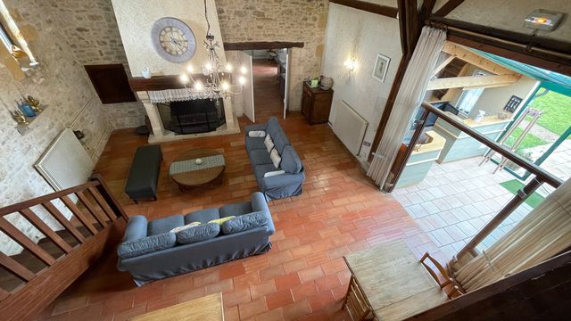 A21007PHV24 - Propriété de caractère sur 3,8ha, comprend une maison d'habitation/gîte et un bâtiment agricole dans un hameau calme. La maison de 315m2 en pierre peut facilement accueillir 15 personnes et se compose d'un bar, salon/véranda, une salle à manger avec grande cheminée ouverte, mezzanine, une cuisine équipée pour un pro avec buanderie, 2wc et 6 chambres avec leur SDB et wc.