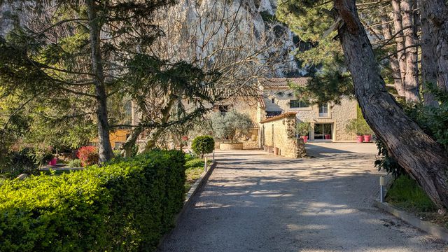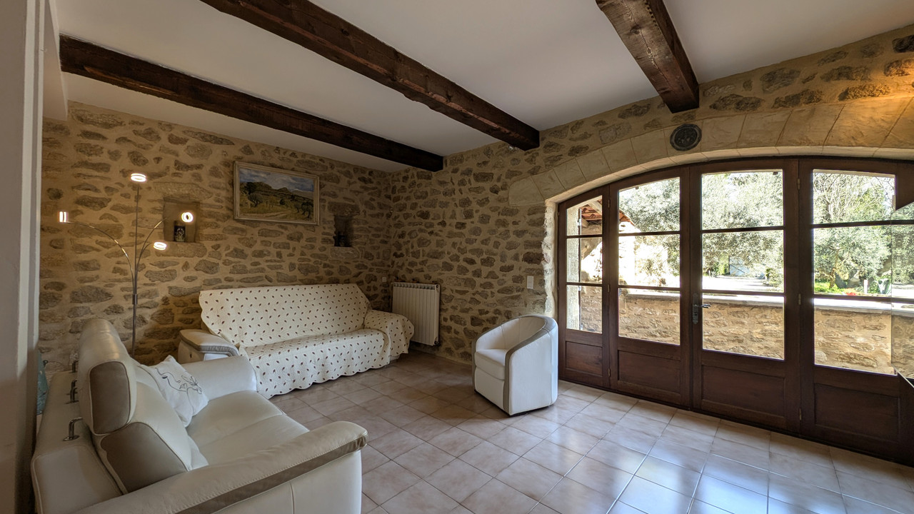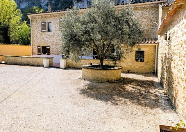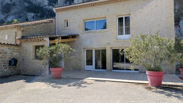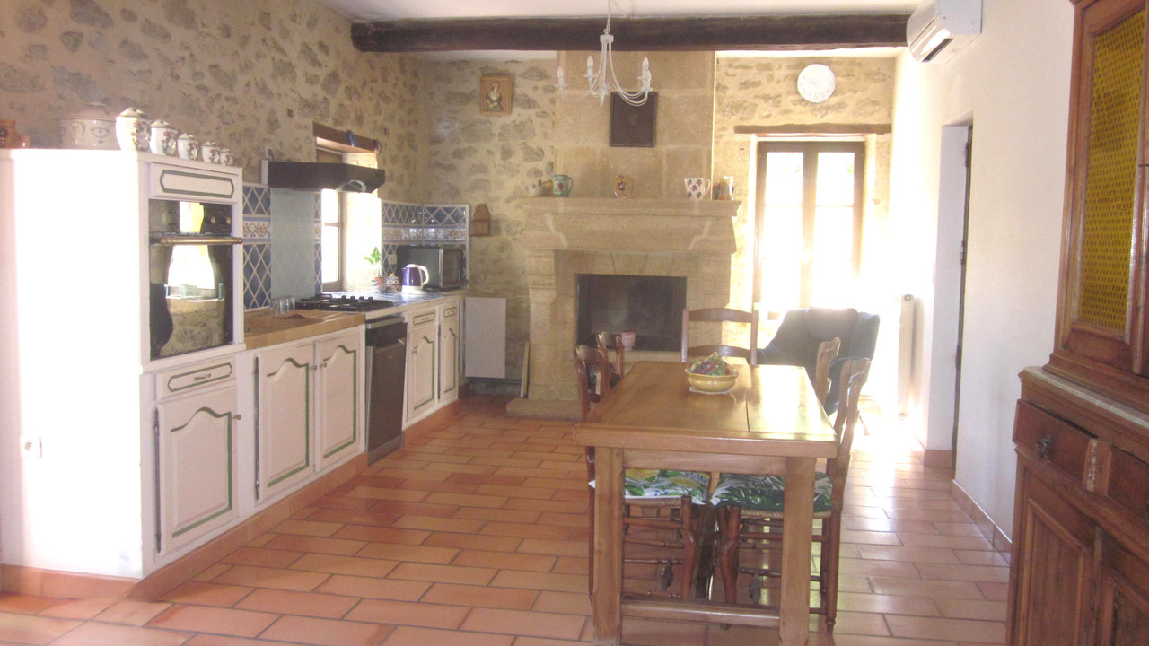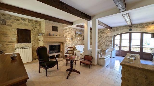 A36338JOB30 - À seulement 5 minutes de Villeneuve-lès-Avignon, sur la commune de Sauveterre, en pleine campagne et à l'abri des regards, ce superbe mas en pierre de 265 m², ancien moulin à huile du XVIIIe siècle, a été rénové avec soin. Il a su conserver tout le charme de l'ancien : pierres apparentes, poutres d'époque et belles cheminées. Cette propriété se compose de 2 habitations indépendantes avec de beaux volumes, parfaite pour une grande famille et / ou une belle activité de chambres d'hôtes. Elle comprend :