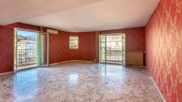 Situé au cinquième et avant dernier étage, traversant. Ce grand appartement vous séduira par ses généreux volumes et son balcon circulaire permettant un accès de chaque pièce. Avec une vue dégagée sur les Jardins de Bioves, les collines mentonnaises avec ses beaux palaces et un aperçu mer.