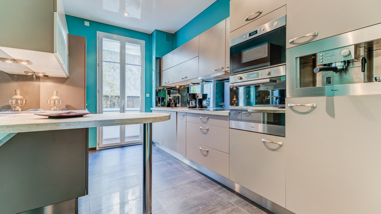 L'appartement, entièrement climatisé et en excellent état, séduit par ses beaux volumes et son confort. Possibilité de créer une troisième chambre. Une vaste cave de 10.5m² complète ce bien