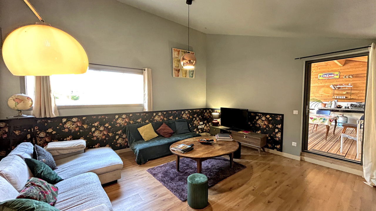 Développée sur deux niveaux communicants, la propriété séduit par ses volumes et son caractère unique.