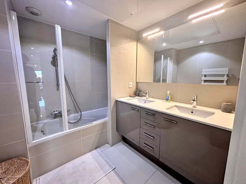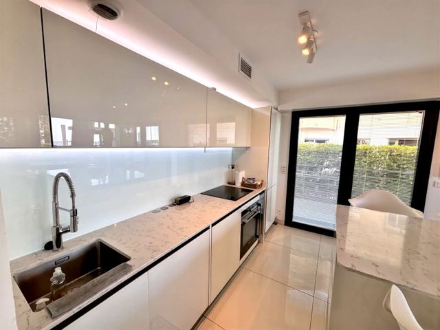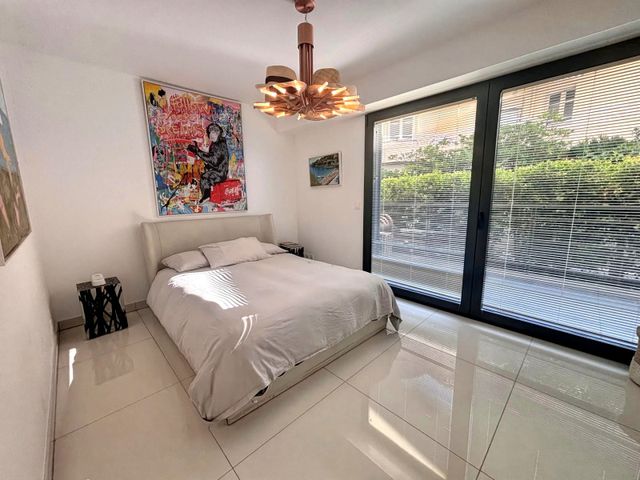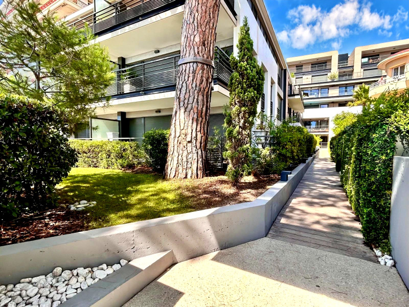 A35778SIM06 - EXCEPTIONNEL EMPLACEMENT à Juan les Pins pour cet élégant appartement moderne récemment construit au rez-de-chaussée au bord de la plage dans une RÉSIDENCE PRIVÉE DE HAUTE QUALITÉ avec deux lits doubles, deux salles de bains et un garage sécurisé. Opportunité RARE.