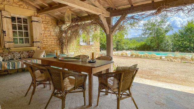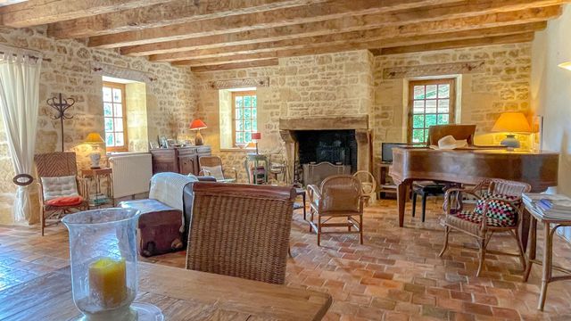 A38848NB24 - Dans un cadre boisé et protégé, à quelques pas de la Dordogne et 2,4 km des premiers commerces, cette belle maison en pierre, orientée plein sud et à l'abri des regards, vous séduira par son atmosphère paisible, son charme et son emplacement très recherché.