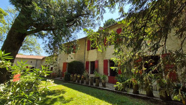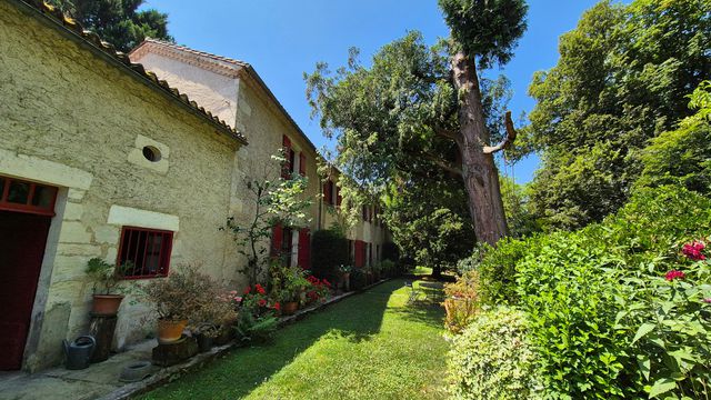Au coeur d'un parc d'arbres centenaires de 6000 m2 coule une source qui conduit à un bassin ombragé.