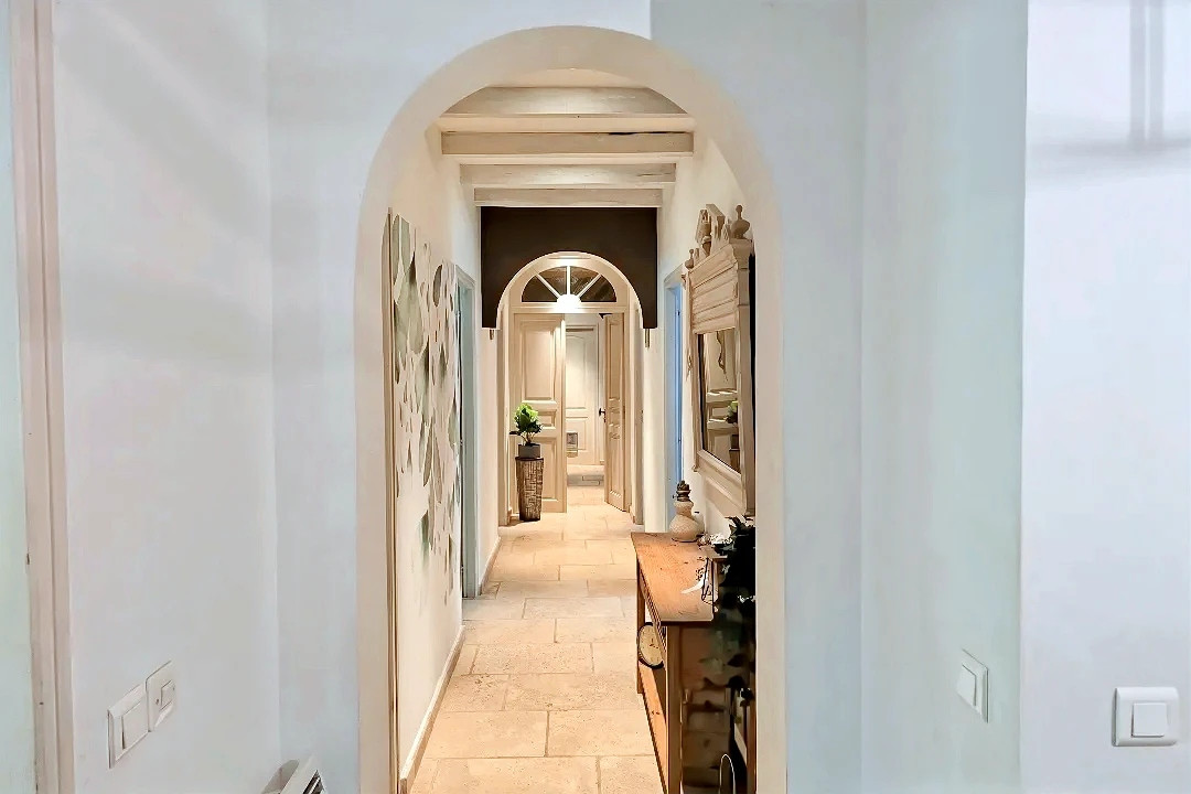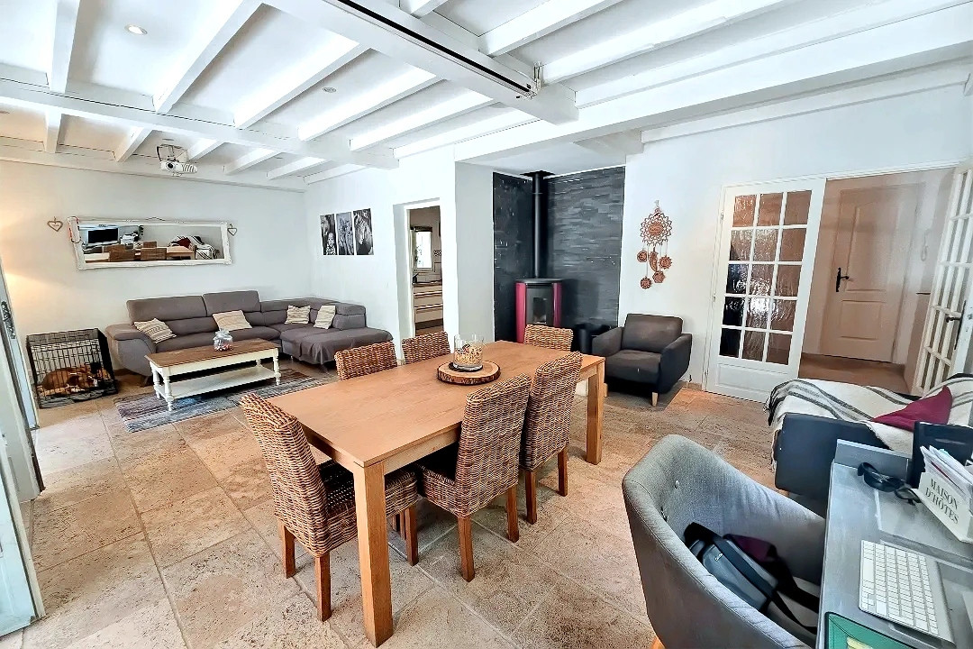 Elle offre un séjour spacieux, cuisine semi-ouverte, 4 chambres , 2 salles de bains et 2 WC; on peut aussi envisager la création d'un gîte indépendant .
