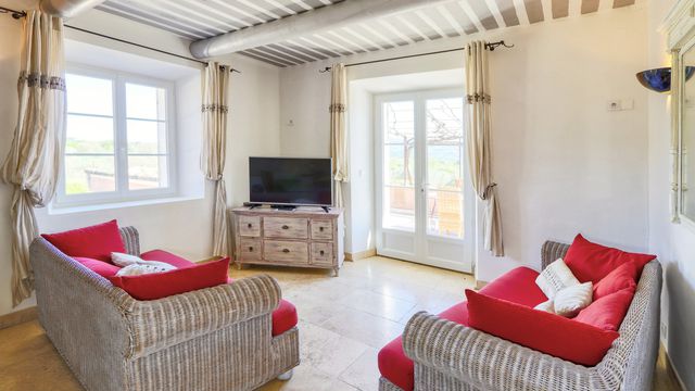 A36931EKO84 - Nichée dans un environnement préservé au cœur du triangle d'or, cette ancienne propriété en pierre, entièrement rénovée avec goût, bénéficie d'une vue imprenable sur le Luberon et les villages perchés de Bonnieux et Lacoste. Elle est implantée sur plus de 2 hectares de terrain en restanques, planté d'oliviers, de vignes et d'essences méditerranéennes.