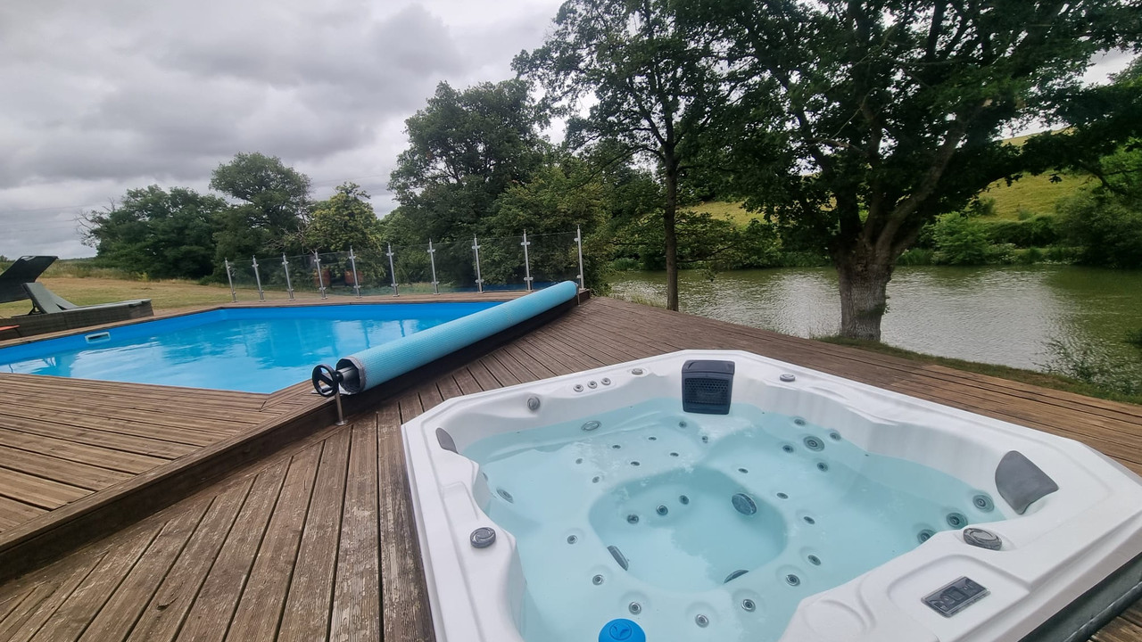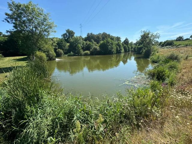 A37944DSE53 - Situé entre Laval et Château-Gontier, dans le sud de la Mayenne, ce site de pêche à la carpe s'est forgé une réputation de lieu de villégiature haut de gamme pour la pêche à la carpe et les vacances en famille. Il propose deux étangs empoissonnés abritant des carpes immaculées pour les pêcheurs de tous niveaux. L'hébergement sur place offre un cadre de vacances familial luxueux, avec une grande terrasse avec jacuzzi rigide et une piscine chauffée surplombant les étangs.