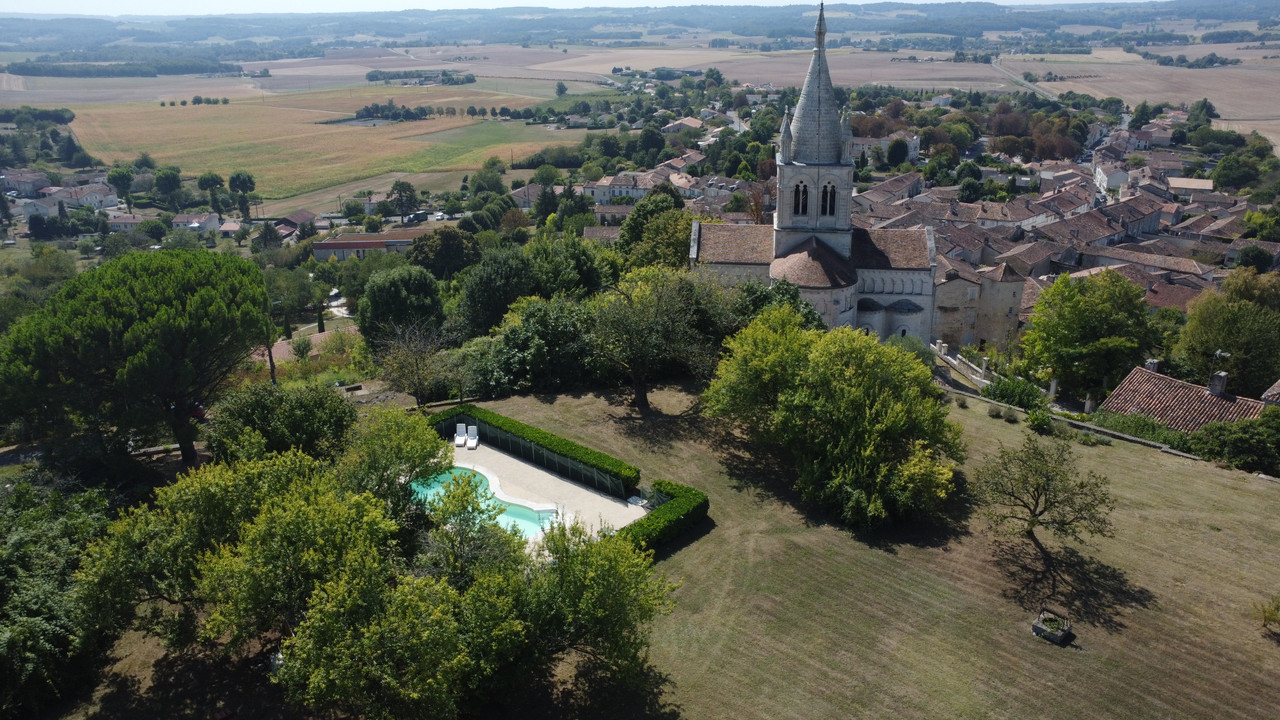 A32018NGA16 - Jolis éléments anciens pour cette maison de village offrant 5 chambres avec salle de bain/wc, et un petit gîte non attenant. Un beau jardin arboré avec piscine domine la propriété, et vous fera profiter du calme avec des magnifiques vues à 360°. Coup de coeur assuré !