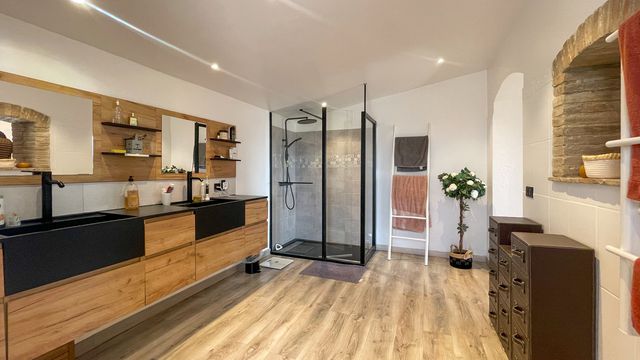A36655FT83 - Découvrez ce superbe mas en pierre de 284 m² (433 m² au sol), un véritable bijou alliant caractère, authenticité et modernité, idéalement situé à proximité des commerces et des commodités, au calme.