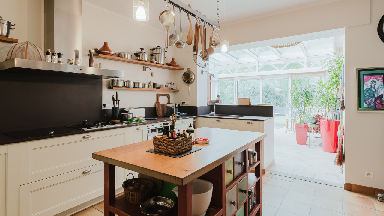 La maison familiale offre de beaux volumes et une vraie respiration : un grand séjour traversant, cinq chambres, et des espaces pour tous les membres de la famille, petits et grands. Les ouvertures sur le jardin apportent une belle lumière et une vue dégagée.