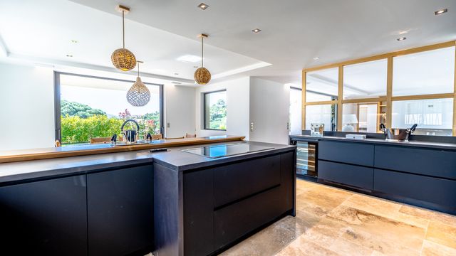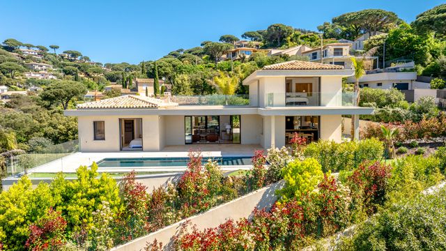 A42013ERD83 - Cette villa d'exception en VEFA offre une superbe vue mer et des prestations de grand luxe. Elle se compose d'un vaste séjour lumineux ouvert sur de larges terrasses, d'une élégante salle à manger, d'une cuisine américaine entièrement équipée et de son cellier.
