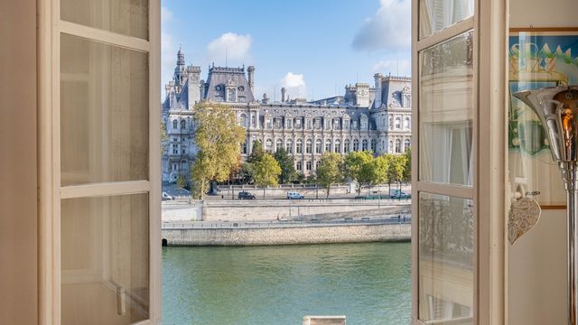 A41329DPE75 - Ile de la Cité, belles vues imprenables sur l'Hôtel de Ville et la Seine de cet appartement de 2 pièces (T2) à 2 pas de Notre-Dame. Cet appartement unique en coin de 36,41m2 (35,88 Carrez) bénéficie d'une vue plongeante sur le Quai aux Fleurs tout en étant en retrait de la Seine pour plus de calme. Entièrement rénové et superbement distribué, sans perte de place, il comprend une belle pièce de vie avec 4 baies vitrées apportant une clarté exceptionnelle, qui inclus un salon, une cuisine intégrée avec son coin salle a manger, une chambre, une salle de d'eau attenante et un WC. Seul au 4e étage d'un immeuble du 17ème siècle, avec son escalier original en pierre et chène, en plein cœur d'un Paris chargé d'histoire de 20 siècles. Devenez le 892e habitant de l'Ile de la Cité (recensement 2016), ou l'Ile de la Fratérnité durant la Révolution,, considérée comme l'antique berceau de la ville de Lutèce, probablement habité par une petite tribu gauloise nommée les Parisii. A voir absolument.