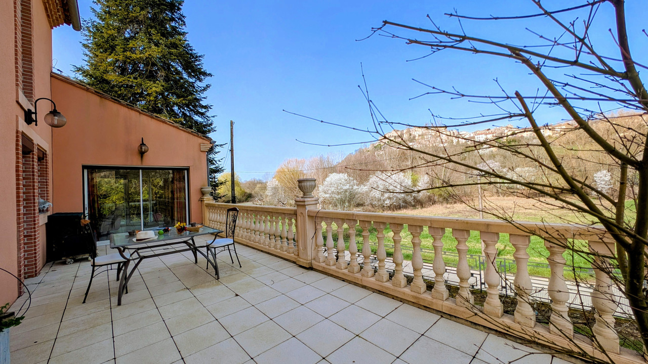 A43220CFO81 - Cette superbe propriété se situe dans un des plus beaux villages de France , un village perché dans le ciel . Ce lieu intemporel dont le patrimoine architectural remarquable se borde de fortifications , de nombreuses portes se trouve au cœur de la Toscane Occitane et du célèbre triangle d'or . Cette incroyable maison d'une surface habitable de 251m2 bâtie sur 2 niveaux offre des prestations haut de gamme et bénéficie d'un confort optimal , avec en bonus une chambre en suite au rez-de-chaussée ! Sa luminosité est vraiment exceptionnelle avec : ses deux bow windows traversants et grandes baies s'ouvrant sur de larges terrasses.