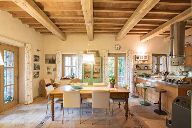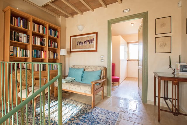-Dépendance de 100 m2 se compose d'un bureau et d'un petit appartement d'invités avec cuisine-salon, chambre et salle de bain. Les deux bâtiments ont été restaurés en 2008, avec une grande attention aux matériaux et au confort de l'environnement. Il y a aussi un équipement PV et des radiateurs au sol.