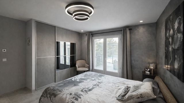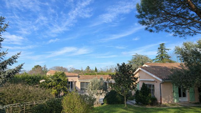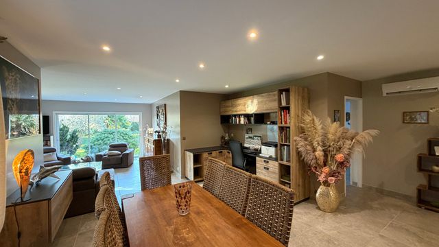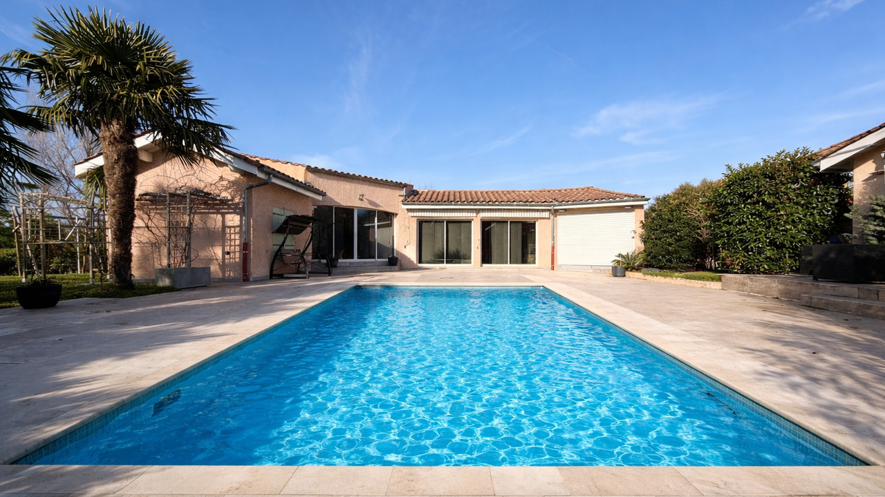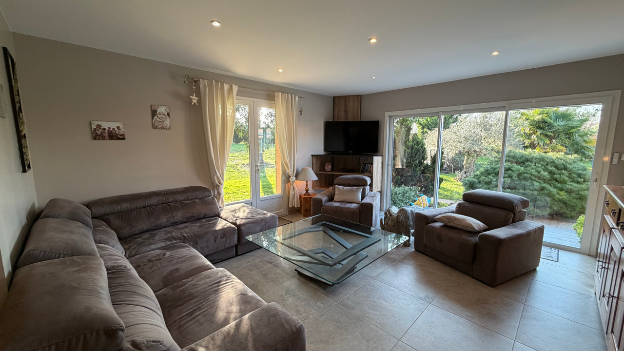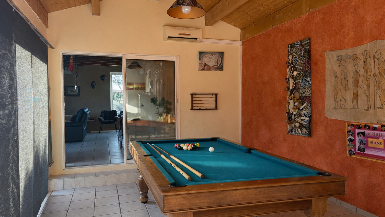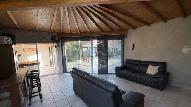 La maison principale développe environ 200 m² habitables, organisés autour de l'art de vivre et du partage. La vaste pièce de vie, ouverte sur la piscine, invite naturellement à la convivialité. La cuisine avec espace repas, tournée vers le jardin arboré, complète harmonieusement cet espace. L'ensemble comprend quatre chambres confortables.