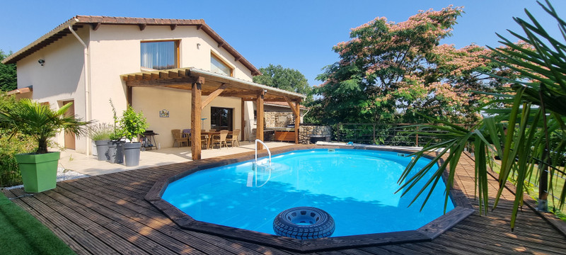 A l'extérieur, une grande terrasse couverte est parfaite pour profiter des repas en plein air, quelle que soit la météo. La terrasse donne sur une superbe piscine de 50 m², créant une oasis privée avec une vue imprenable sur le paysage environnant. Sous la terrasse, une cave spacieuse offre un espace de rangement supplémentaire, idéal pour le vin ou les outils de jardinage.