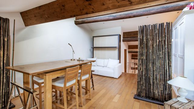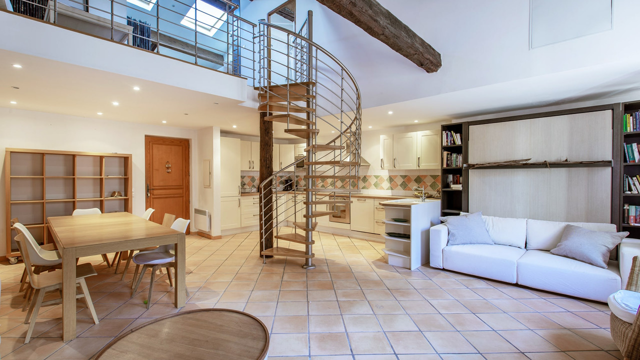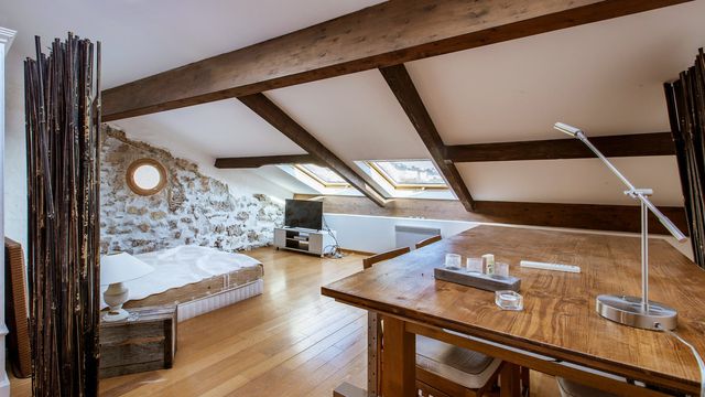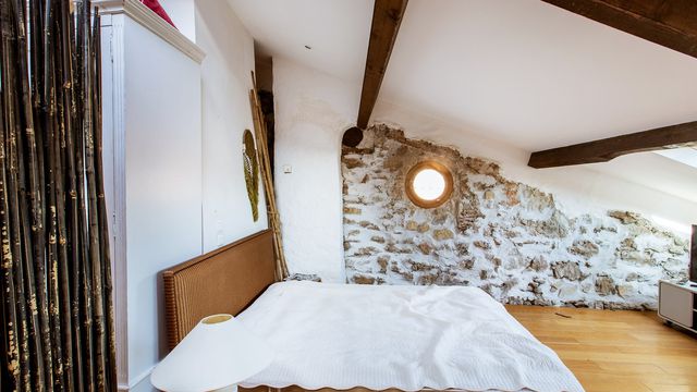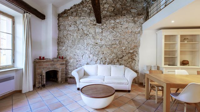 A18404OVI06 - Villefranche sur Mer - Vieux village. Proche de la mer. Au 3ème et dernier étage, lumineux et grand appartement duplex dans l'esprit loft. Au niveau de l'entrée un grand espace de vie avec séjour et salle à manger, cuisine ouverte équipée, à l'étage la grande chambre, espace lounge et bureau, la salle de douche avec toilettes. Grande hauteur sous plafond, mûrs en pierres naturelles, cheminée, luminosité sont quelqu'uns des atouts qui vous séduiront.