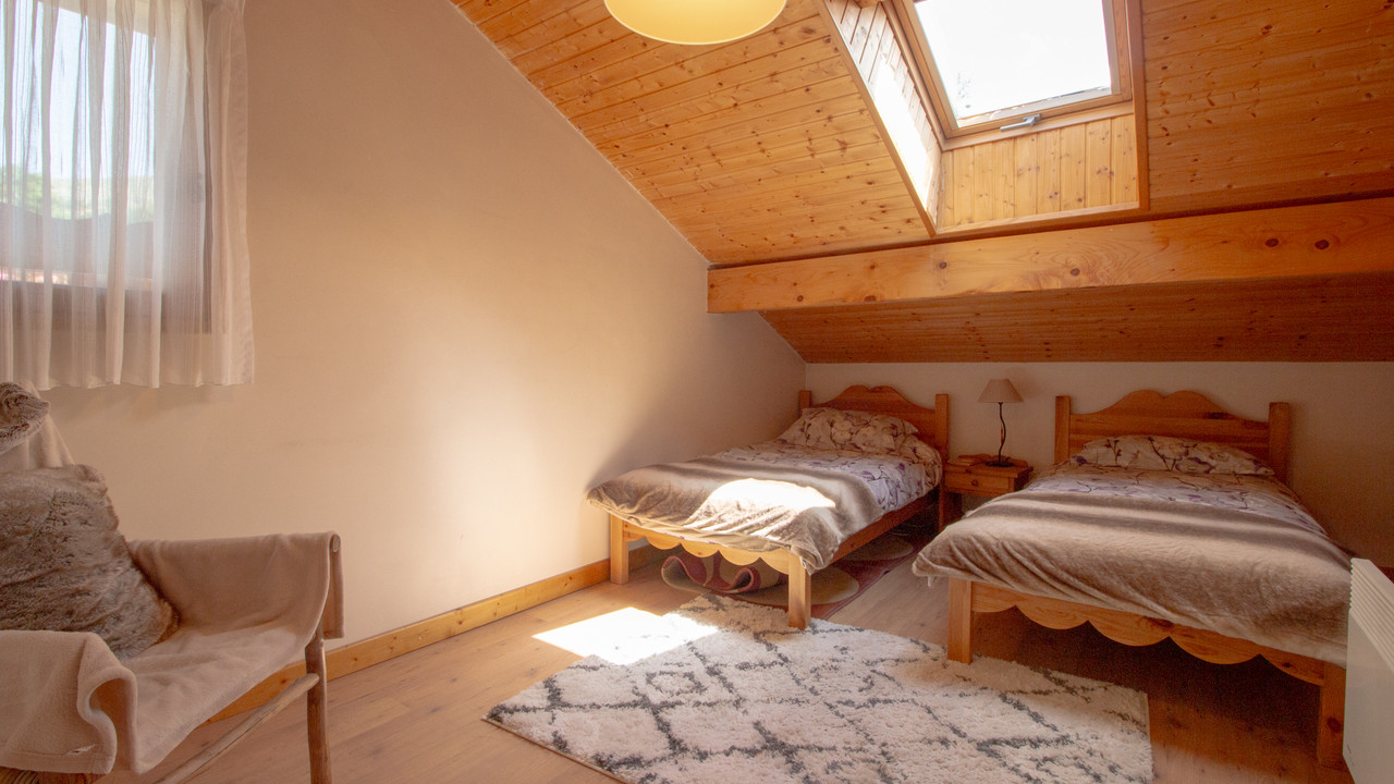 A39224EH73 - This charming standalone chalet is split over three levels with a habitable surface area of 157m2 and features 4 spacious double bedrooms, a sauna, garage (additional 29m2), open plan living area with stove, a spacious garden and beautiful mountain views. Tucked away in the peaceful hamlet of Saint-Marcel, the chalet is ideally located just minutes from world-class skiing in the Three Valleys with a free ski bus less than 150metres from the chalet.