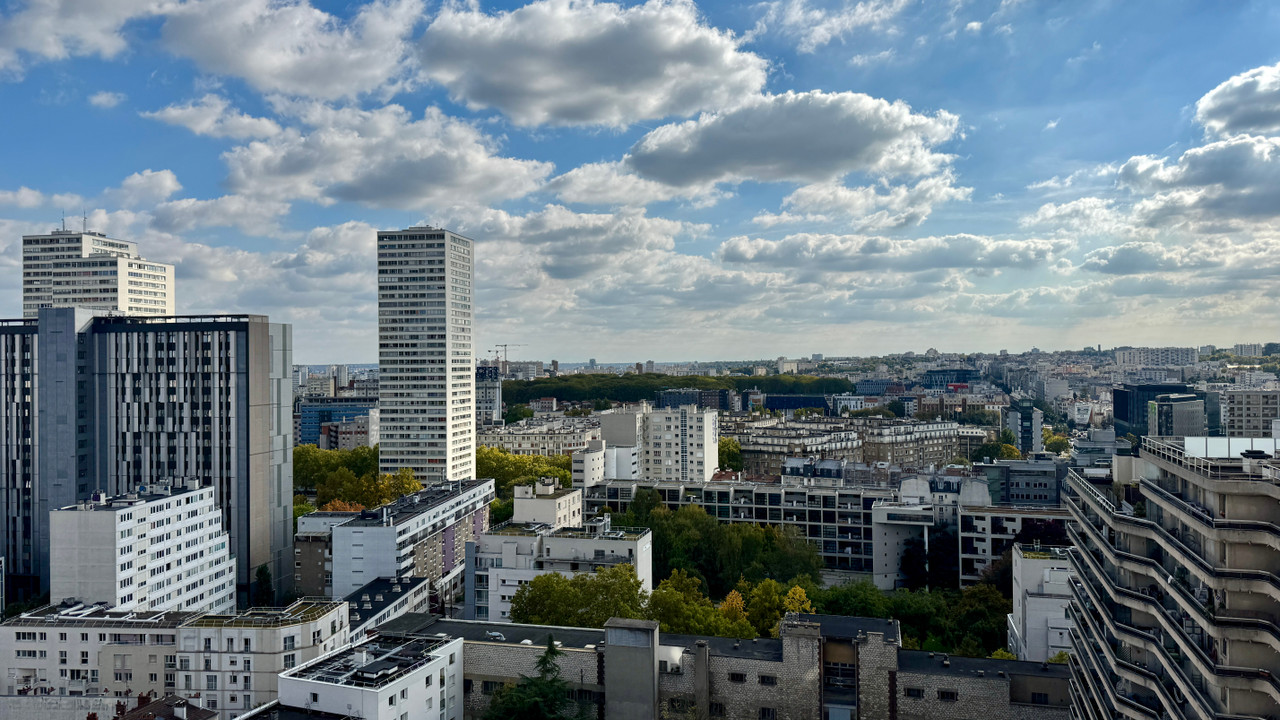 A40567AAD75 - PARIS 13th – Maison Blanche/Place d'Italie – 3-room apt (2 beds) – Energy rating: E/E – 94 m² (see floor plan & virtual tour). On the 18th fl of the Tour Super Italie, at the foot of Maison Blanche M° station (L7 & L14) and 800m from Place d'Italie, with quick access to Orly Airport, this lovely dual-aspect apt of 94.40 m² Carrez (94.0 m² total floor area) offers unobstructed panoramic views. Bathed in light thanks to its N/E double exposure, it stands out for its warm atmosphere and floating wood floors throughout. The layout includes an entrance with built-in closets, a bright 21 m² living room, an equipped separate kitchen with dining area, 2 bedrooms, a shower room, a closet, and a separate WC. Located in a prestigious and secure residence (256 apartments) with caretakers and CCTV, the bldg offers rare amenities such as a private indoor swimming pool and a panoramic solarium on the 34th fl, close to shops and public transport. A cellar is included. Parking available at extra cost.