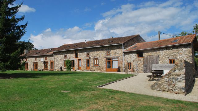 A32335DRO87 - Bordering the river Vincou this pretty farm currently has been updated to provide 3 houses with a total of 9 bedrooms, 8 bathrooms, fitted kitchens - main house with a range cooker and Rayburn wood burner cooker, numerous barns, in ground swimming pool, orchard and more - ideal as a smallholding / equestrian property ( make your own hay)