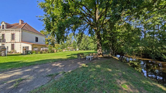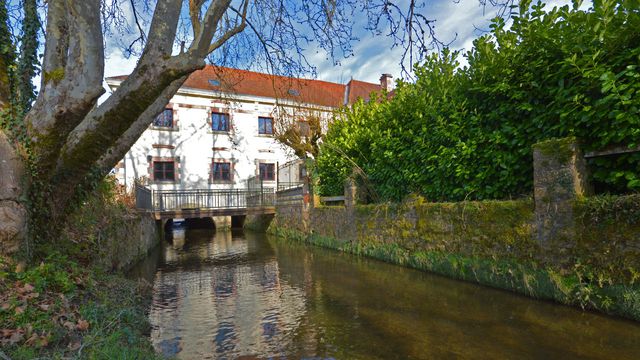 A34986SUG24 - A former mill, originally built in the 1670's as a paper mill, which was later used as a forge, and latterly a flour mill until the 1960's. It was depicted on the cadastre Napoléon of 1811 and has been tastefully fitted out by the present owners with up-to-date bathrooms and modern kitchens. Part of one wing spans the mill stream which passes beneath the building and there is a bridge over to the forecourt, in the midst of nearly 2,5 acres of island. The property is located approximately 1,5 km from a small and historic market town with its medieval fortress, and thus an easy distance to shops, restaurants, and primary and secondary schools. A great family house or business potential for those who love the idea of being literally surrounded by water!