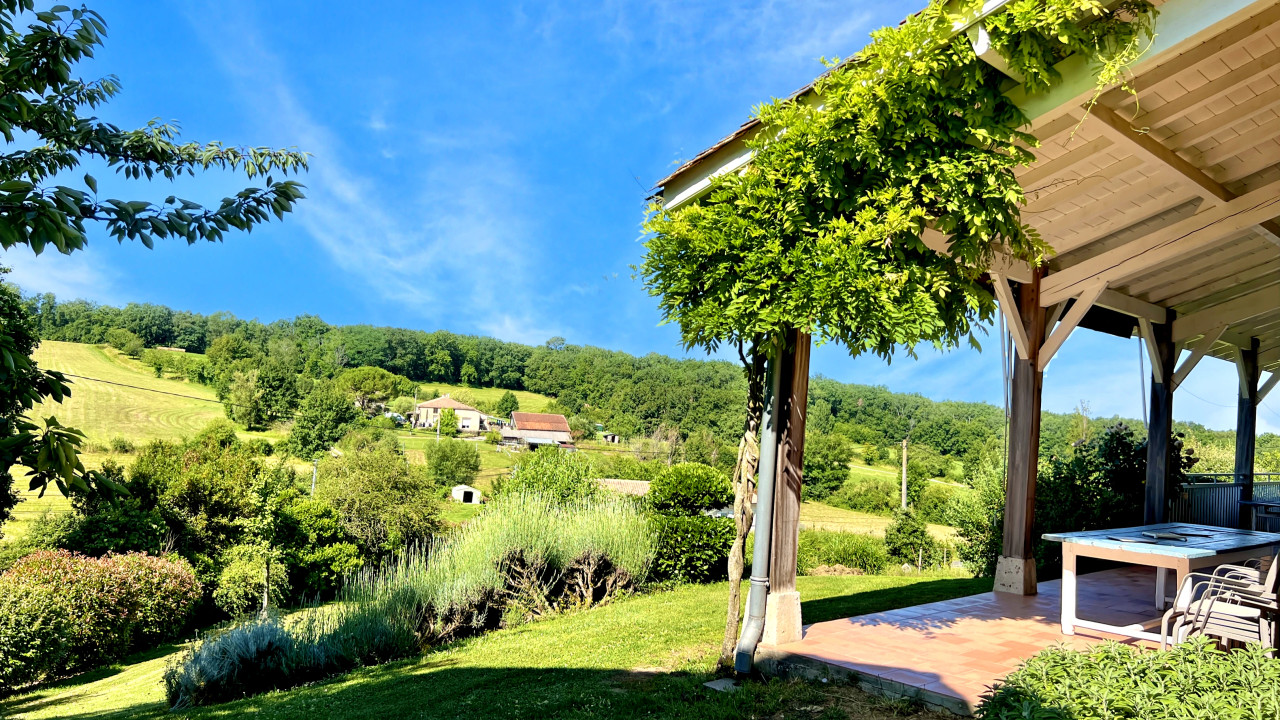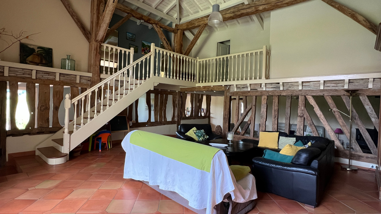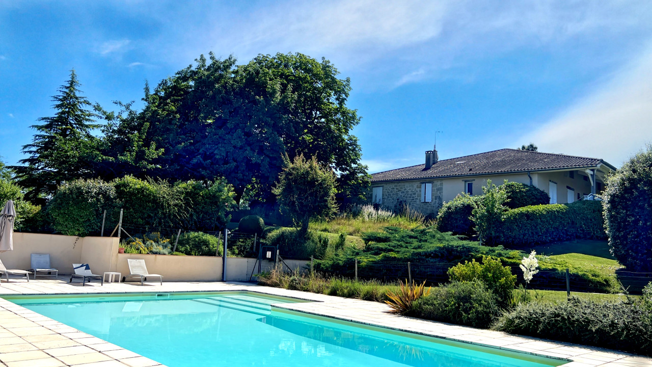 A37057GJP47 - Located in a tranquil setting and meticulously maintained, this property offers tremendous business potential. Set within well-stocked gardens spanning 2.09 hectares (5.17 acres), the three renovated dwellings retain their charming original features, including exposed beams and stonework. The accommodations include the original farmhouse with 4 bedrooms and 3 bathrooms, a converted barn offering 5 bedrooms and 3 bathrooms, and a one-bedroom cottage. A large covered terrace with elevated views overlooks the property, which boasts a swimming pool on each side. The original tobacco barn has been transformed into a covered pétanque court, perfect for warm summer evenings. Surrounded by mature gardens and trees, this exquisite estate is just 5 km from Lauzun, 8 km from Eymet, and 30 km from Bergerac.