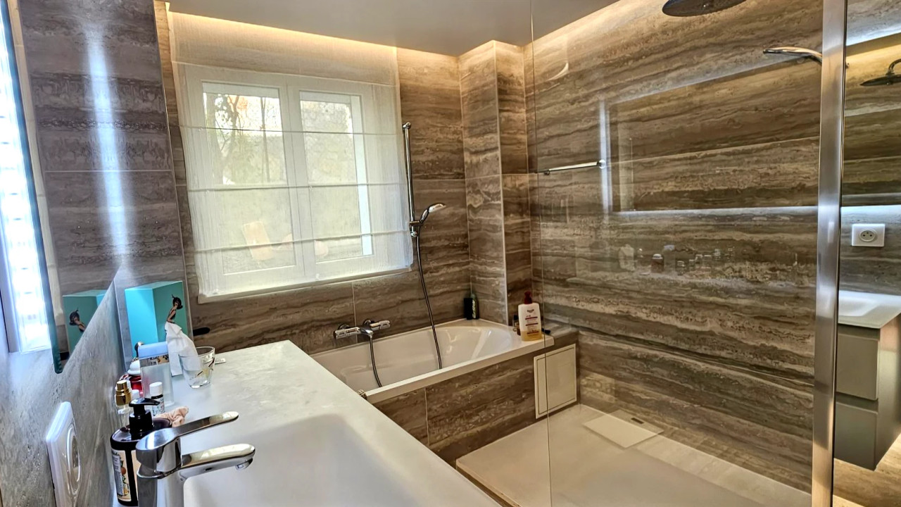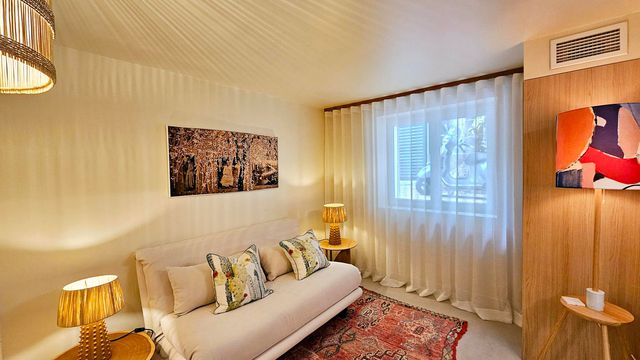 Just steps from Rue d'Antibes and the Croisette beaches, this elegant house offers three bedrooms with en-suite bathrooms, a bright living room, air conditioning, Wi-Fi, and several outdoor spaces: a garden, terraces, and a small pool perfect for relaxation.