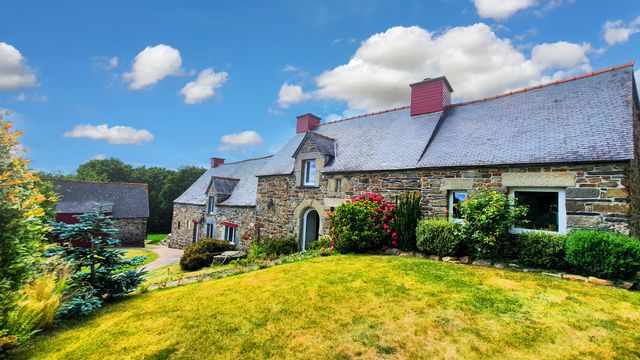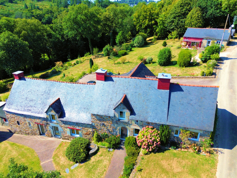 A thoughtfully renovated and beautifully presented four bedroom stone, longère, complete with separate spa, additional independent one bedroom house, beautiful landscaped gardens with far reaching views bordered by a stream. Also included is a large private woodland. All this near the famous Lac de Guerlédan in the heart of Brittany.
