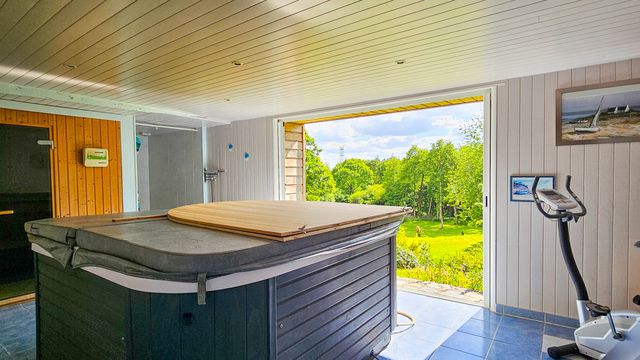 Stunning views of the gardens, stream and woodland beyond ensure peace and tranquility, yet commerces and main roads are just five minutes away. Fibre optic internet is available.