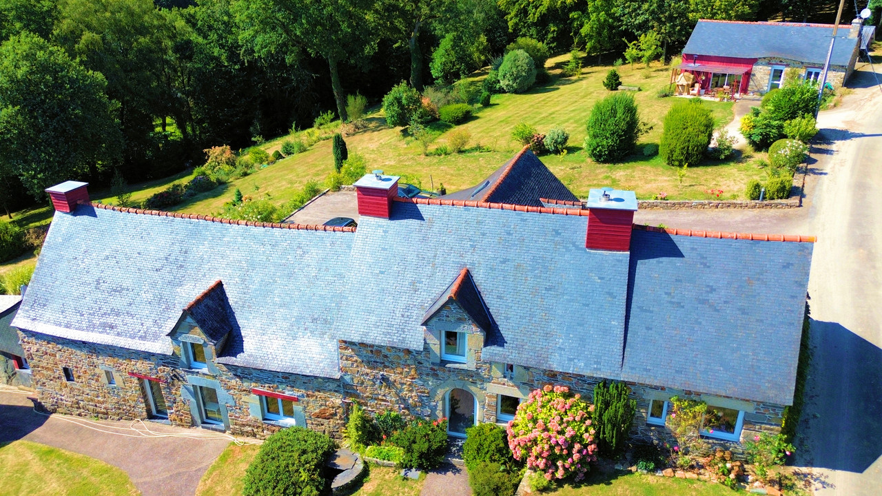 A thoughtfully renovated and beautifully presented four bedroom stone, longère, complete with separate spa, additional independent one bedroom house, beautiful landscaped gardens with far reaching views bordered by a stream. Also included is a large private woodland. All this near the famous Lac de Guerlédan in the heart of Brittany.