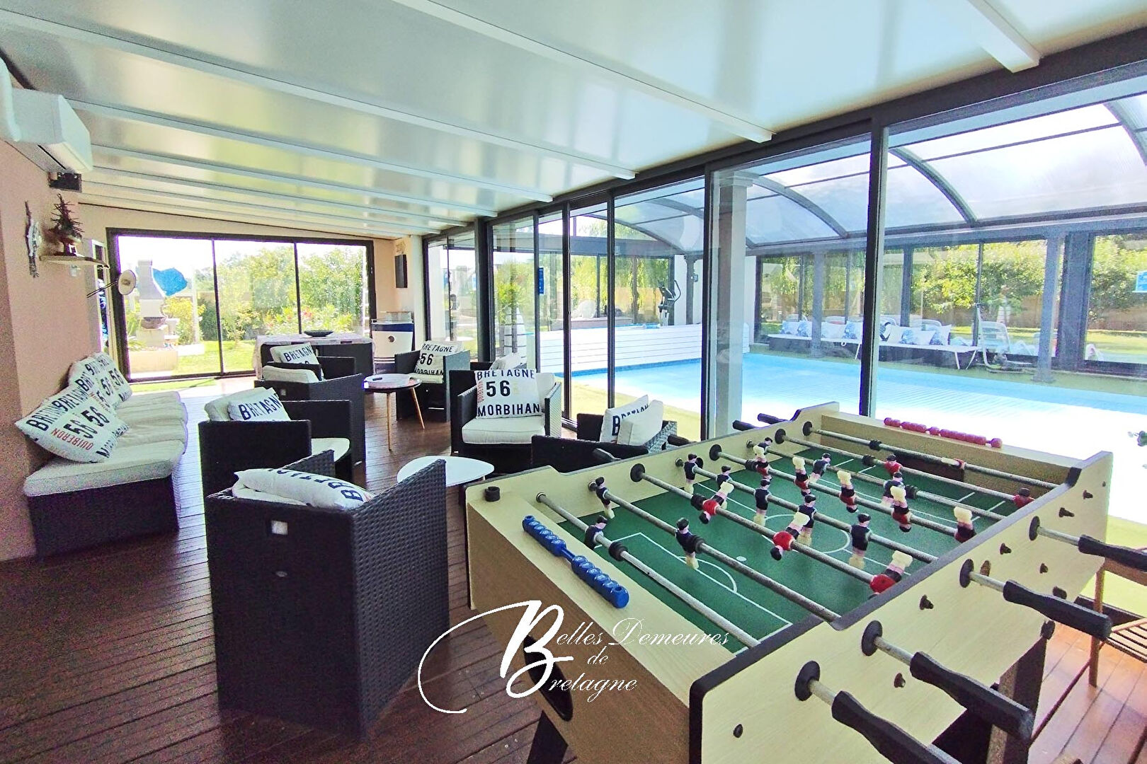 1.497.500 € ID: 174425Located near the port of Étel, this lovely contemporary house of over 250 m², with an indoor pool and veranda, is ideal for various projects. Its large living space, numerous bedrooms, and location offer rare potential for a B&B or gîte business.