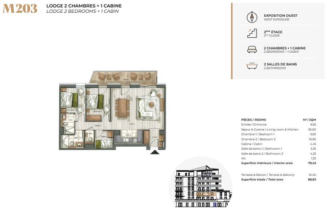 A39684JQB73 - New to the market 15 apartments in the Genesis brand new off plan resort development. Conveniently located by the piste, it will feature luxury modern amenities, with individual unit prices ranging from 745,000€ to 1,900,000€ (1 bedroom plus cabine bedroom 45m² to 3 bedrooms plus cabine 101m²)