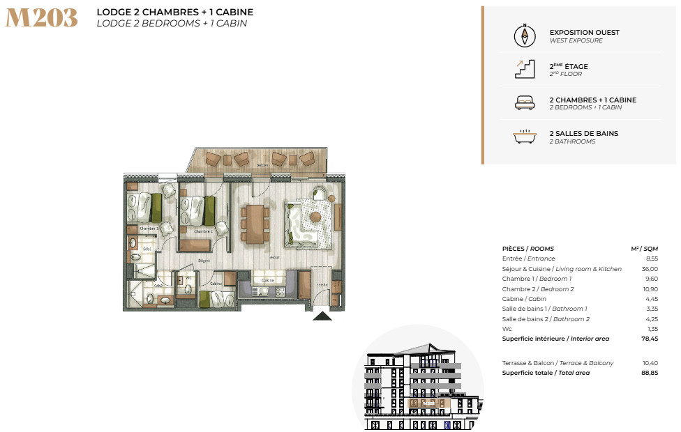 Each apartment benefits from a personal ski locker, storage cave and private underground parking.