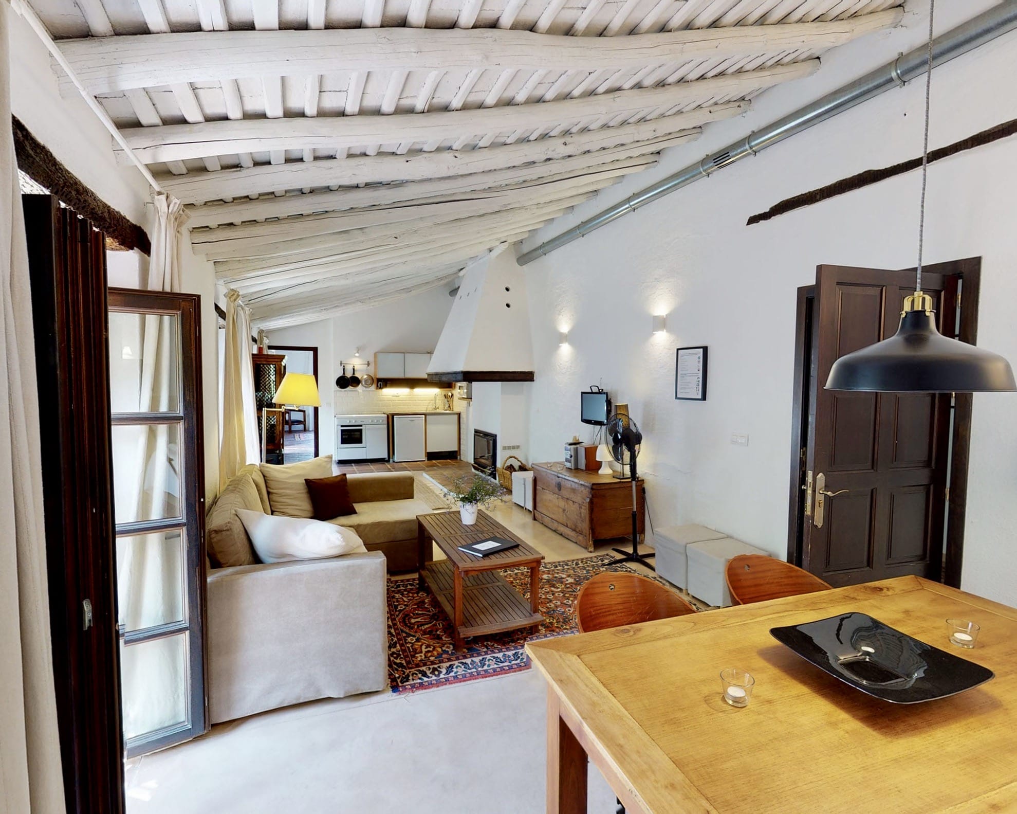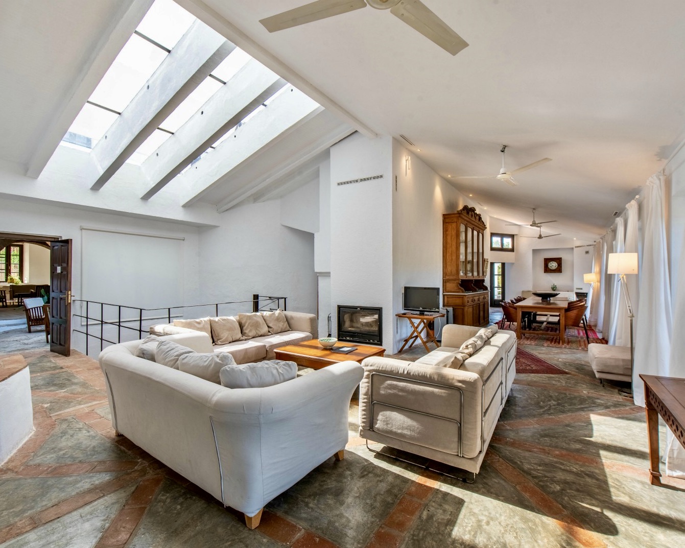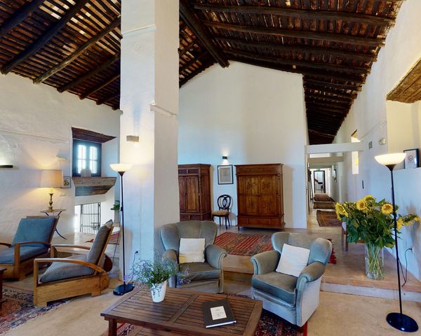 Attraverso un tipico e pesante portone andaluso in legno e porte automatiche in vetro si accede alla grande sala eventi con colonne ad arco. A questo livello si trova anche l'antica cucina con il suo alto camino per consentire l'uscita dei fumi di cottura. Questa non viene utilizzata perché sul retro della sala si trova una cucina commerciale con accesso all'esterno e un'area coperta ideale per la preparazione dei cibi. Sempre sul retro si trova l'ex cappella. Durante la ristrutturazione dell'edificio, i proprietari hanno scoperto opere d'arte e iscrizioni sulle pareti, che sono state mantenute insieme ad altri elementi originali. Sul retro della sala si trova anche un patio, ideale per le colazioni all'aperto.